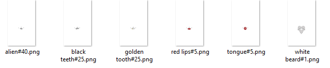 <table><thead><tr><th width="154">Traits</th><th width="92" align="center">Values</th><th align="center">Notes</th></tr></thead><tbody><tr><td>Background</td><td align="center">18</td><td align="center"><img src="https://3418013813-files.gitbook.io/~/files/v0/b/gitbook-x-prod.appspot.com/o/spaces%2FlXTrKGPq5oFSUTbeUxxc%2Fuploads%2FAy5m3ZNwlWSfW1mynA3H%2Fimage.png?alt=media&#x26;token=68b4f7a9-8bc2-417d-9a73-5f38ac8f9d12" alt=""></td></tr><tr><td>Facebody</td><td align="center">8</td><td align="center"><img src="https://3418013813-files.gitbook.io/~/files/v0/b/gitbook-x-prod.appspot.com/o/spaces%2FlXTrKGPq5oFSUTbeUxxc%2Fuploads%2FIArp4zhJsssAhoTBa56I%2Fimage.png?alt=media&#x26;token=16ee6028-1f1d-4954-b1a6-33f814a989e9" alt=""></td></tr><tr><td>Outfit </td><td align="center">43</td><td align="center"><img src="https://3418013813-files.gitbook.io/~/files/v0/b/gitbook-x-prod.appspot.com/o/spaces%2FlXTrKGPq5oFSUTbeUxxc%2Fuploads%2FgPO63XlCLPjTUi0xsnNd%2Fimage.png?alt=media&#x26;token=d7d8b8f6-8e8c-4900-bd63-aa1a91af22f9" alt=""></td></tr><tr><td>Mouth</td><td align="center">6</td><td align="center"><img src="https://3418013813-files.gitbook.io/~/files/v0/b/gitbook-x-prod.appspot.com/o/spaces%2FlXTrKGPq5oFSUTbeUxxc%2Fuploads%2FmGoHcgVtCDTbS1FkNDl3%2Fimage.png?alt=media&#x26;token=df539f21-4e11-4075-bc12-07bcd2fae2c1" alt=""></td></tr><tr><td>Glasses</td><td align="center">10</td><td align="center"><img src="https://3418013813-files.gitbook.io/~/files/v0/b/gitbook-x-prod.appspot.com/o/spaces%2FlXTrKGPq5oFSUTbeUxxc%2Fuploads%2FcLBwyD6olqWQ38iXOxSM%2Fimage.png?alt=media&#x26;token=7954c148-3e5b-4f95-9564-11b4e4c37fcd" alt=""></td></tr><tr><td>Hat</td><td align="center">19</td><td align="center"><img src="https://3418013813-files.gitbook.io/~/files/v0/b/gitbook-x-prod.appspot.com/o/spaces%2FlXTrKGPq5oFSUTbeUxxc%2Fuploads%2F9hlqKIpjQxxx8jTcd3Fb%2Fimage.png?alt=media&#x26;token=0f02a7bc-e9ab-4a57-8df4-85d8b5033644" alt=""></td></tr><tr><td>Accessory</td><td align="center">13</td><td align="center"><img src="https://3418013813-files.gitbook.io/~/files/v0/b/gitbook-x-prod.appspot.com/o/spaces%2FlXTrKGPq5oFSUTbeUxxc%2Fuploads%2FaMiJh0Qu37XP7usBjbbv%2Fimage.png?alt=media&#x26;token=3e23c5f4-1250-4fa1-ab1f-65cae533a9e5" alt="" data-size="original"></td></tr><tr><td>Asset type</td><td align="center">6</td><td align="center">see table below</td></tr></tbody></table>
